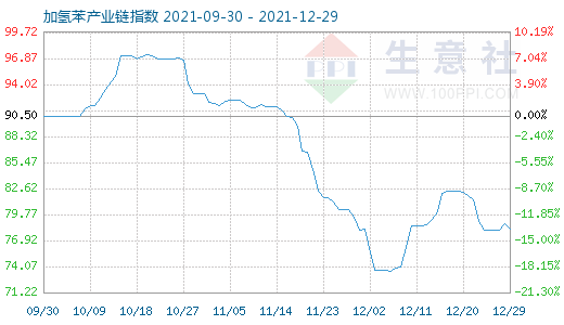 12月29日加氢苯产业链指数为78.13,较昨日下降了0.6点,较周期内最高点102.02点(2013-12-24)下降了23.42%,较2020年04月06日最低点33.51点上涨了133.15%。(注:周期指2013-12-01至今)