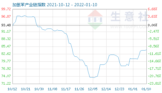 加氢苯产业链指数自2022/1/4起,7天陆续上涨了4.527%。
