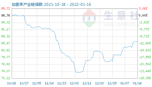 1月16日加氢苯产业链指数为86.28,与昨日持平,较周期内最高点102.02点(2013-12-24)下降了15.43%,较2020年04月06日最低点33.51点上涨了157.48%。(注:周期指2013-12-01至今)