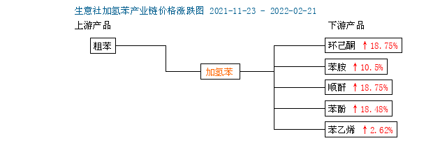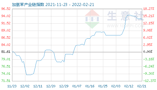 加氢苯产业链指数自2022/2/13起,9天陆续下降了1.482%。