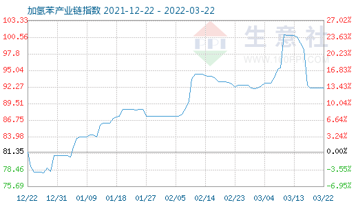 加氢苯产业链指数自2022/3/10起,13天陆续下降了8.869%。