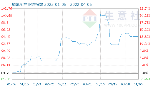 4月6日加氢苯产业链指数为94.68,较昨日上升了0.07点,较周期内最高点102.02点(2013-12-24)下降了7.19%,较2020年04月06日最低点33.51点上涨了182.54%。(注:周期指2013-12-01至今)