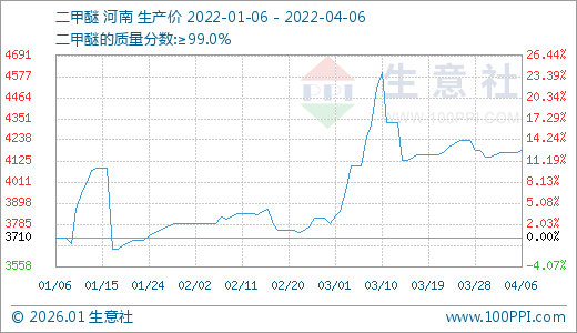 04月06日二甲醚4183.33元/吨 60天上涨10.48%