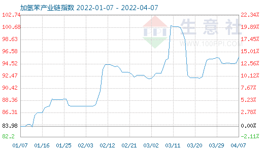加氢苯产业链指数自2022/3/22起,17天陆续上涨了3.899%。