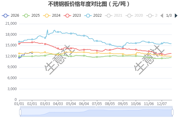 通过生意社近五年的不锈钢年度价格对比图显示,2月份不锈钢价格大部分上涨。