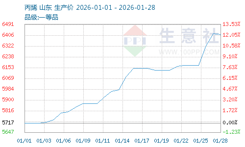 据生意社商品行情分析系统,截止1月28日,丙烯报价6411元/吨,较1月1日报价5717元/吨震荡上涨,涨幅12.13%。丙烯装置检修较多,丙烯供给阶段性偏紧,丙烯价格震荡上涨。成本支撑,异丁醛成本上涨支撑较大。