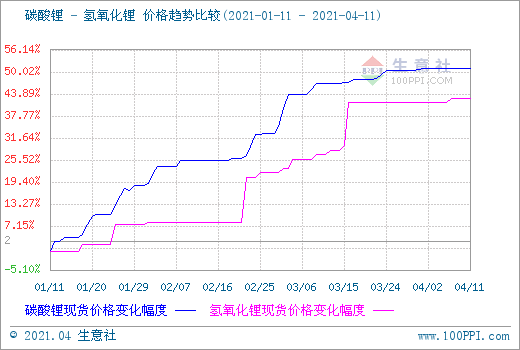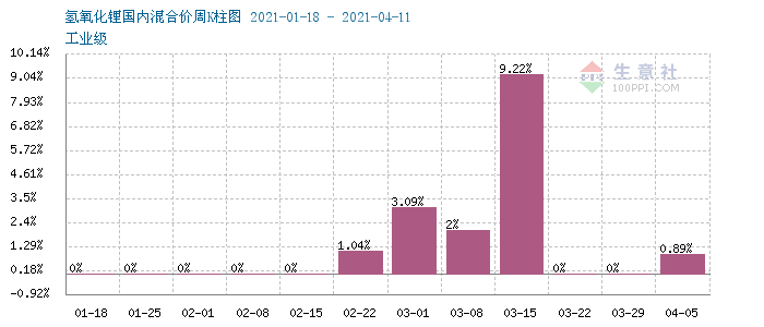 生意社:本周氢氧化锂市场行情上涨(4.5-4.11)