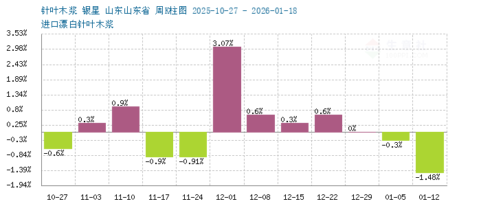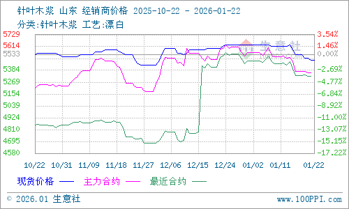 据生意社商品行情分析系统监测:近期针叶浆和阔叶浆价格均呈现阶梯式下行。2026年1月22日针叶木浆山东地区市场均价为5483.33元/吨,与1月11日均价相比下降了2.37%。1月22日阔叶木浆山东地区市场均价为4650元/吨,与1月11日均价相比下降了2.11%。