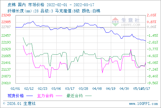 价格:据生意社数据显示,17日3128B皮棉价格22263元/吨左右,环比下跌1.43%。