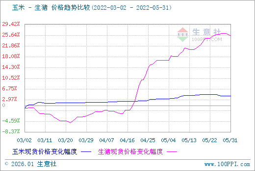 据生意社监测,5月份国内外三元生猪价格持续涨势,整体震荡上行,月底小幅回落,5月1日均价14.53元/公斤,5月31日均价15.62元/公斤,月内上涨7.50%。