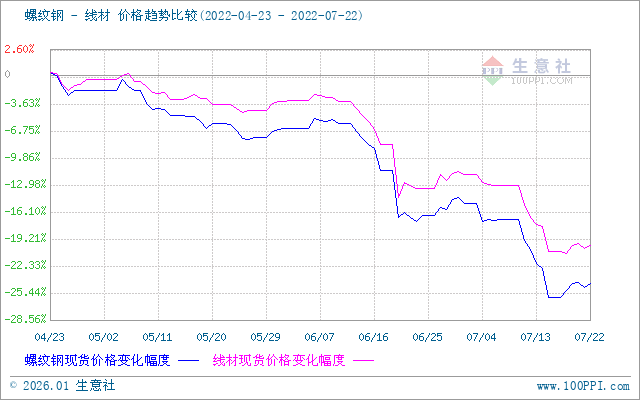 据生意社价格监测,截止7月22日,本周江浙沪地区螺纹钢、线材价格震荡上扬。截止22日,江浙沪地区HRB400螺纹钢均价约3832.22元/吨,较周初小幅上涨1.03%;HPB300高线均价4206元/吨,较周初上涨1.2%。