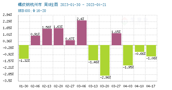 据生意社价格监测,截止4月21日,本周江浙沪地区螺纹钢、线材价格先涨后跌。截止21日,江浙沪地区HRB400螺纹钢均价约3953.33元/吨,较周初下跌1.08%;HPB300高线均价4128元/吨,较周初下跌1.24%。