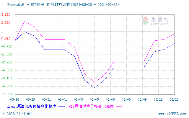 进入本轮计价周期,国际油价行情走势先跌后涨,截止12日,美国WTI原油期货主力合约结算价报78.50美元/桶,布伦特原油期货主力合约结算价报82.60美元/桶。本轮周期开始原油大幅下滑,一方面产油国OPEC+决定逐步解除自愿深化减产空间,供应预期利空油市,另一方面5月制造业PMI从4月的49.2降至48.7,为三个月来最低水平,并为连续第二个月下降,数据疲软加剧了投资者对需求的担忧情绪。但是后期市场普遍寄望于原油夏季需求的增长预期,随着夏季行驶旺季的到来,需求将会活跃起来,导致石油库存明显下降,原油市场行情走势上涨,原油变化率负值缩小。截止13日,第十个工作日原油品种变化率为-3.81%,对应汽油下调190元/吨,柴油下调180元/吨,折升价92#0.15元,95#0.15元,0#0.15元。