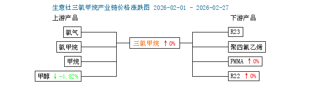 2026年2月国内三氯甲烷市场行情持稳为主,受春节假期休市、节后复工节奏平缓、供需双弱及成本支撑偏弱共同影响,价格全程横盘,无明显涨跌。截至2月27日,生意社三氯甲烷基准价1900元/吨,与月初持平。