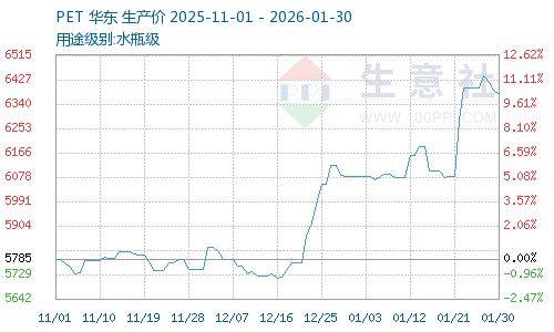 2026年1月聚酯瓶片价格呈先弱后强、下旬冲高回落,期货与现货同步波动,需求端刚需托底但淡季抑制涨幅。截至1月29日,期货主连收盘6326元/吨,据生意社价格数据,华东现货主流均价3275元/吨。