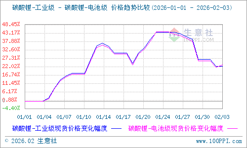 据生意社商品行情分析系统显示:近期碳酸锂价格呈现“先涨后跌、波动加剧”的显著特征,截至2月3日,生意社电池级碳酸锂基准价147000元/吨,较年内最高点(01月23日172000元/吨)下跌14.53%,环比上涨23.12%,同比上涨84.26%。