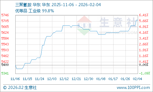 生意社现货基准价:截至2026年2月4日,国内三聚氰胺现货报价为5712.5元/吨。日度涨幅:较前一日上涨37.5元/吨,日涨幅为0.66%。