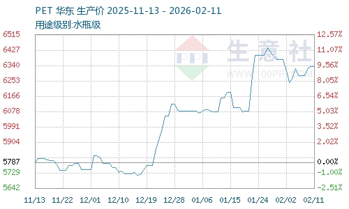 截至2月11日,据生意社价格数据,聚酯瓶片华东现货主流均价6335元/吨。