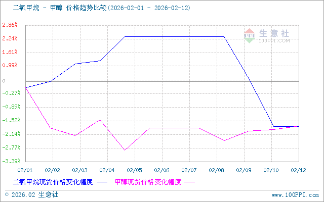 2026年2月,二氯甲烷市场呈现清晰的“上旬强、中旬弱”转折特征。上旬在成本高位与供应减量支撑下延续涨势,市场心态偏强;但进入中旬(2月10日起),风向骤变,山东地区主要生产厂家集体大幅下调出厂价,现货市场由强转弱,节前积累的挺价信心快速瓦解。