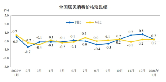 2026年1月CPI同比上涨0.2% 环比上涨0.2%