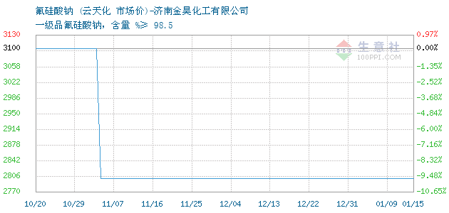 | 属性规格 | 一级品氟硅酸钠,含量 %≥ 98.5 | ||