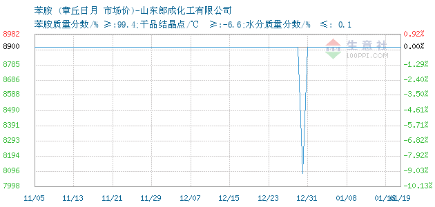 | 苯胺质量分数/% ≥:99.4;干品结晶点/℃ ≥:-6.6;水分质量分数/% ≤: 0.1 附加说明: |