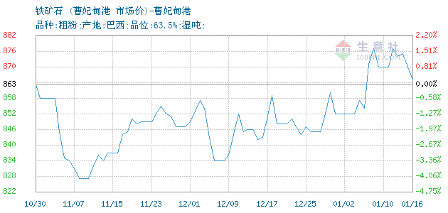 | 品种:粗粉;产地:巴西;品位:63.5%;湿吨; 附加说明: |