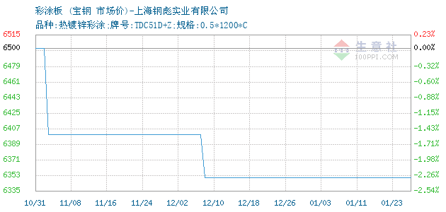 | 品种:热镀锌彩涂;牌号:TDC51D+Z;规格:0.5*1200*C 附加说明: |