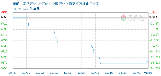 苯酚 • 中国石化上海高桥石油化工公司报价图