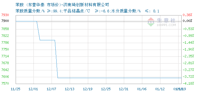 | 苯胺质量分数/% ≥:99.4;干品结晶点/℃ ≥:-6.6;水分质量分数/% ≤: 0.1 附加说明: |