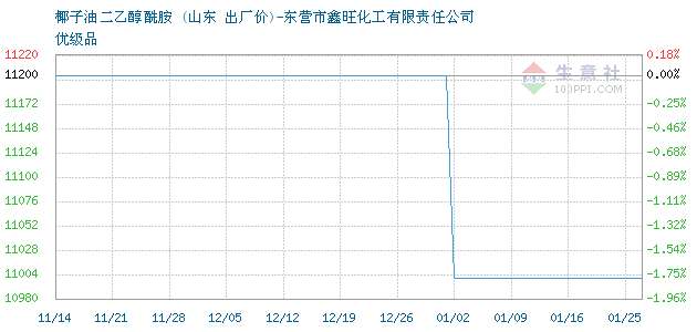 | 优级品 附加说明:山东省东营市鑫旺化工,椰子油二乙醇酰胺报价11000元/吨,化工产品价格变动频繁,详情欢迎来电咨询。 |