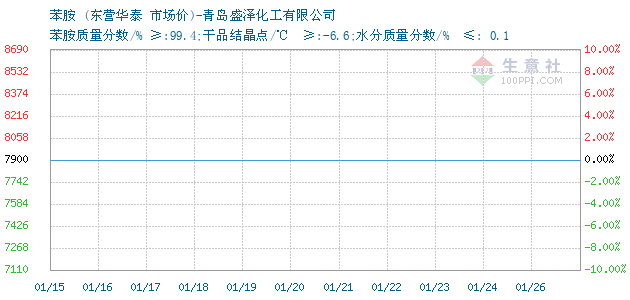 | 苯胺质量分数/% ≥:99.4;干品结晶点/℃ ≥:-6.6;水分质量分数/% ≤: 0.1 附加说明: |