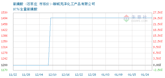 | 97%含量氯磺酸 附加说明:品牌:石家庄氯磺酸;含量97%;包装:槽车 |