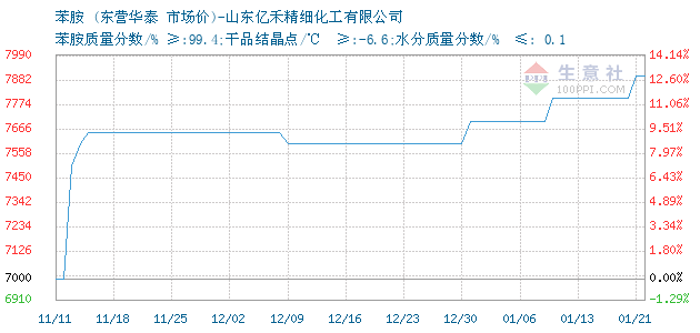 | 苯胺质量分数/% ≥:99.4;干品结晶点/℃ ≥:-6.6;水分质量分数/% ≤: 0.1 附加说明: |