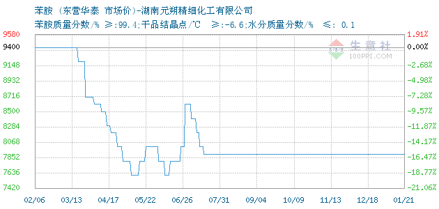 | 苯胺质量分数/% ≥:99.4;干品结晶点/℃ ≥:-6.6;水分质量分数/% ≤: 0.1 附加说明: |
