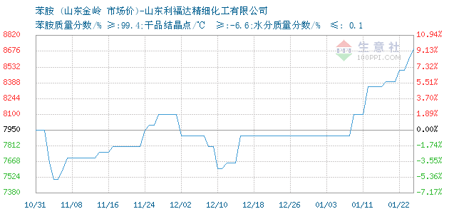 | 苯胺质量分数/% ≥:99.4;干品结晶点/℃ ≥:-6.6;水分质量分数/% ≤: 0.1 附加说明: |