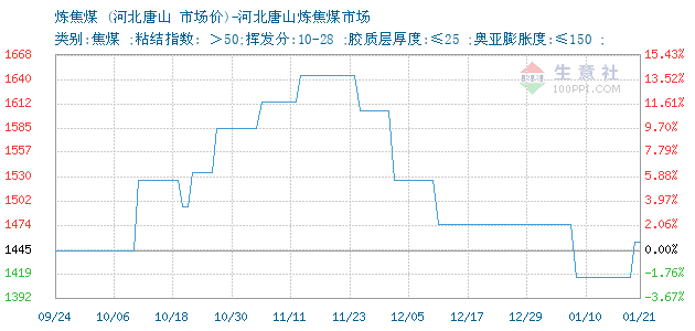炼焦煤(焦煤) • 河北唐山炼焦煤市场报价图