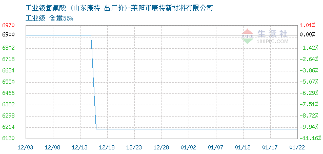 | 工业级 含量55% 附加说明:康特新材是专业氢氟酸厂家,公司拥有完备专业的储备物流体系,长期批发,量大从优,氢氟酸货源足,质量好,欢迎来电免费获取报价! |