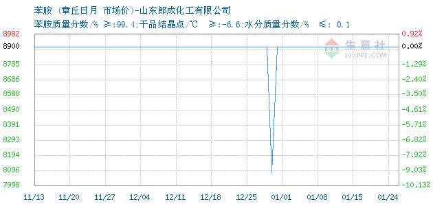 | 苯胺质量分数/% ≥:99.4;干品结晶点/℃ ≥:-6.6;水分质量分数/% ≤: 0.1 附加说明: |