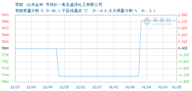 | 苯胺质量分数/% ≥:99.4;干品结晶点/℃ ≥:-6.6;水分质量分数/% ≤: 0.1 附加说明: |