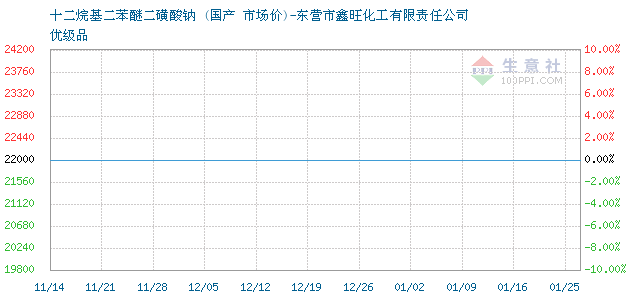 | 优级品 附加说明:东营市鑫旺化工,十二烷基二苯醚二磺酸钠,报价22000元/吨,化工产品价格变动频繁,详情欢迎来电咨询! |