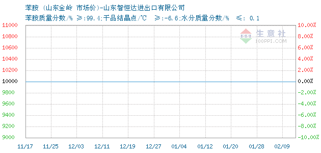 | 苯胺质量分数/% ≥:99.4;干品结晶点/℃ ≥:-6.6;水分质量分数/% ≤: 0.1 附加说明: |