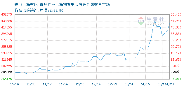 1#锡 • 上海物贸中心有色金属交易市场报价图