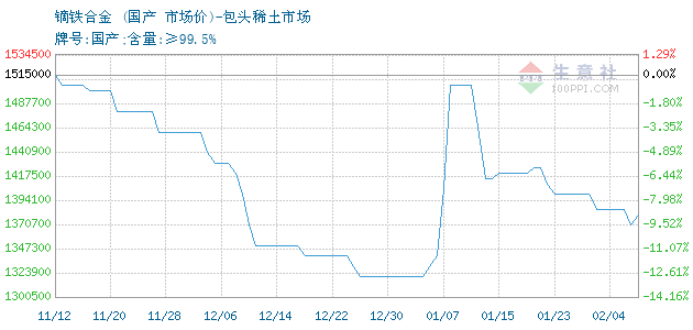 镝铁合金 • 包头稀土市场报价图