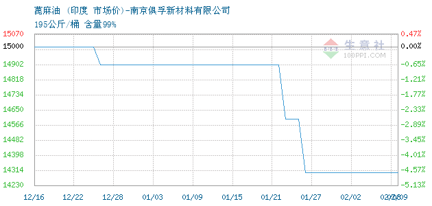 | 195公斤/桶 含量99% 附加说明:印度精炼一级蓖麻油 |