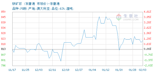 | 属性规格 | 品种:PB粉;产地:澳大利亚;品位:62%;湿吨; | ||