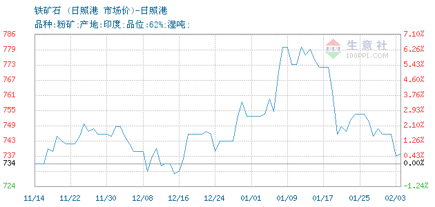 品种:粉矿;产地:印度;品位:62%;湿吨;