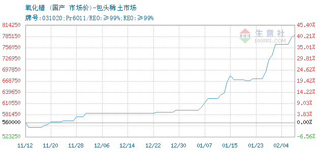 氧化镨 • 包头稀土市场报价图