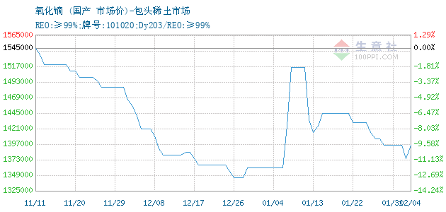 氧化镝 • 包头稀土市场报价图
