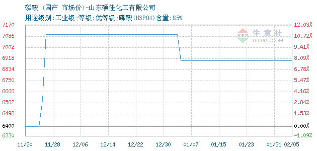 | 属性规格 | 用途级别:工业级;等级:优等级;磷酸(H3PO4)含量:85% | ||